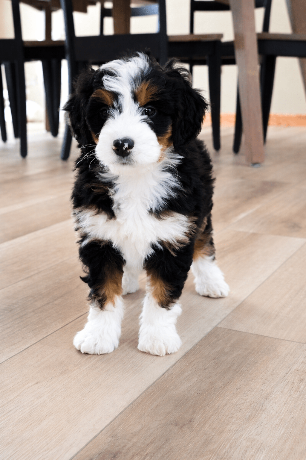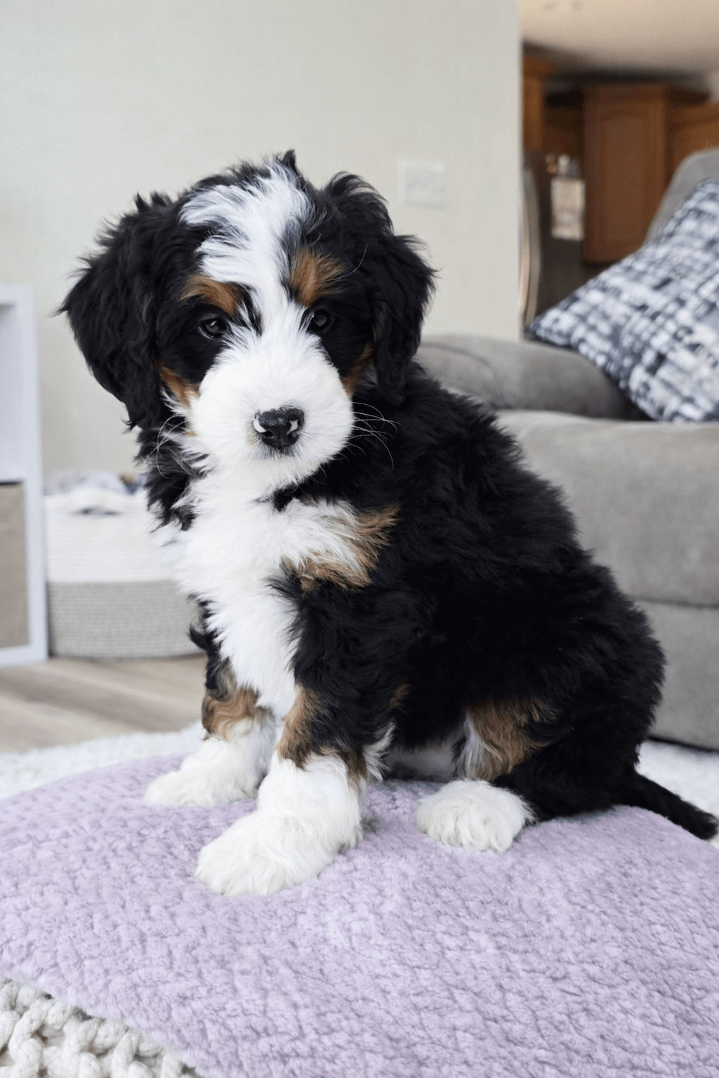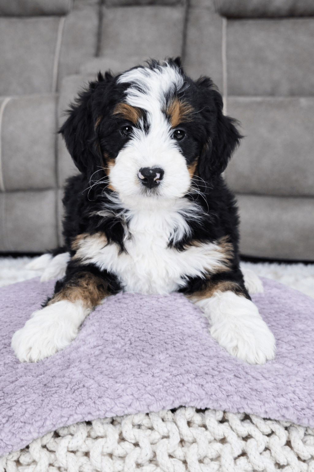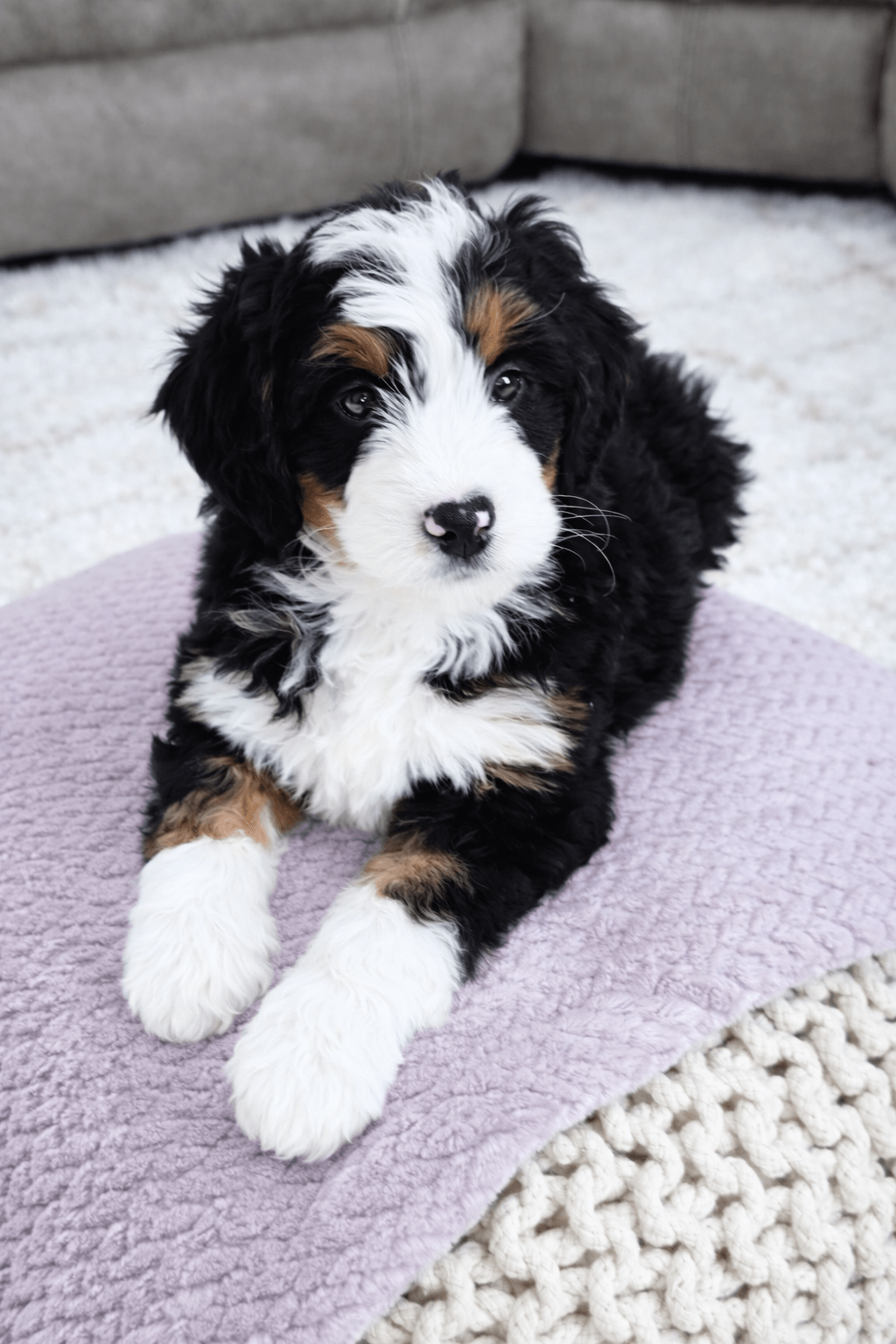 Meet Bella🩶 Our beautiful, Tri Colored , Mini Bernedoodle Puppy!