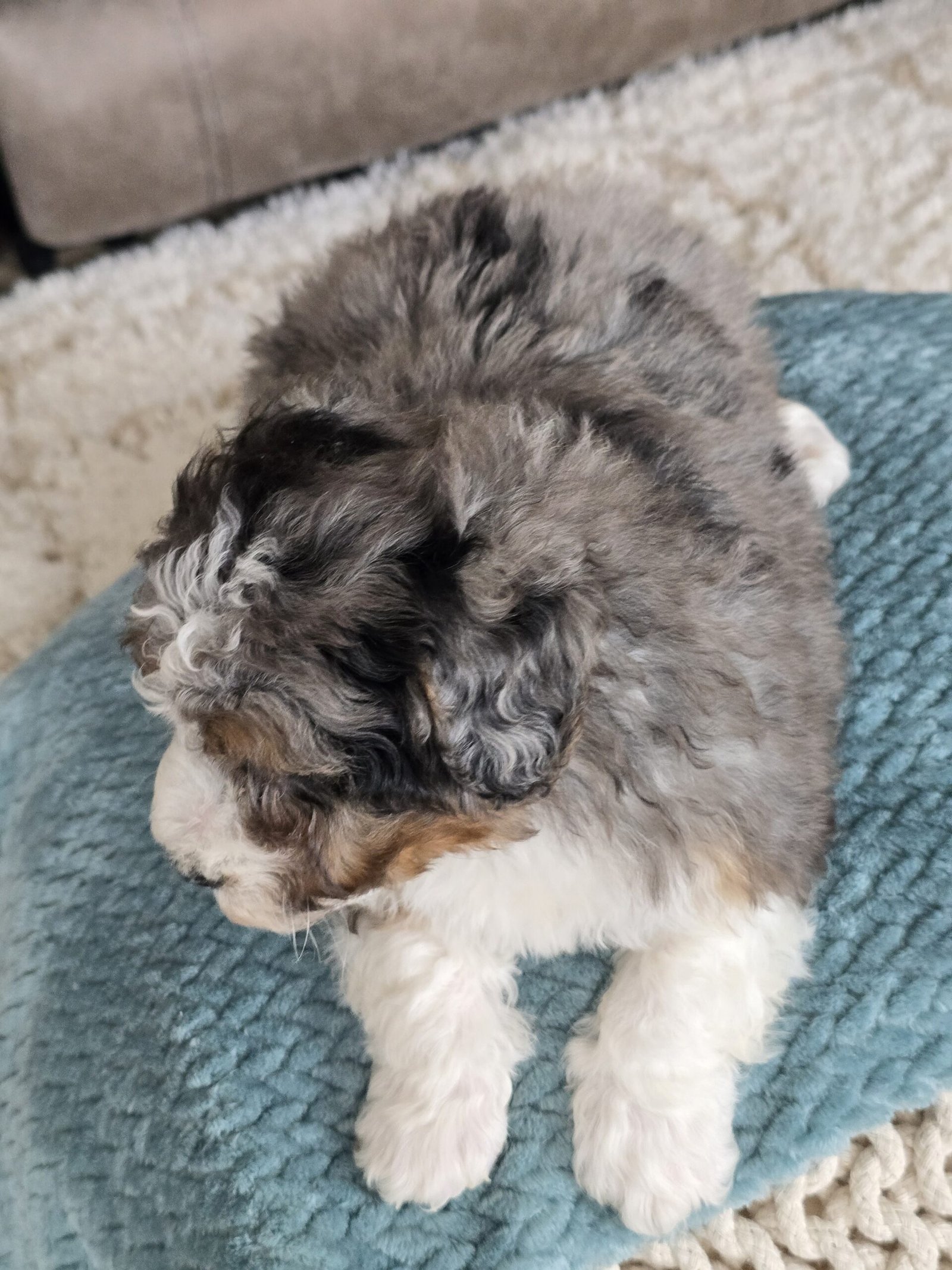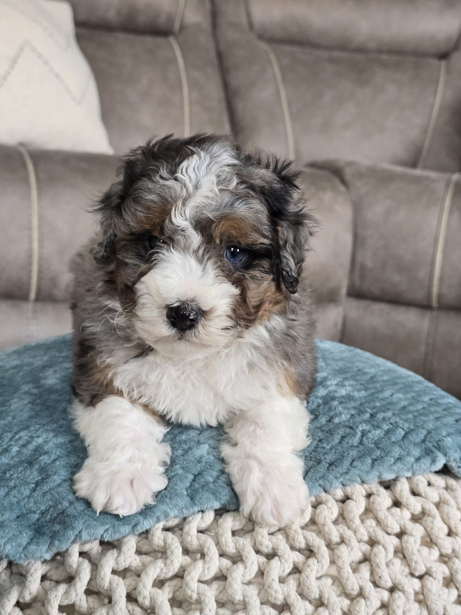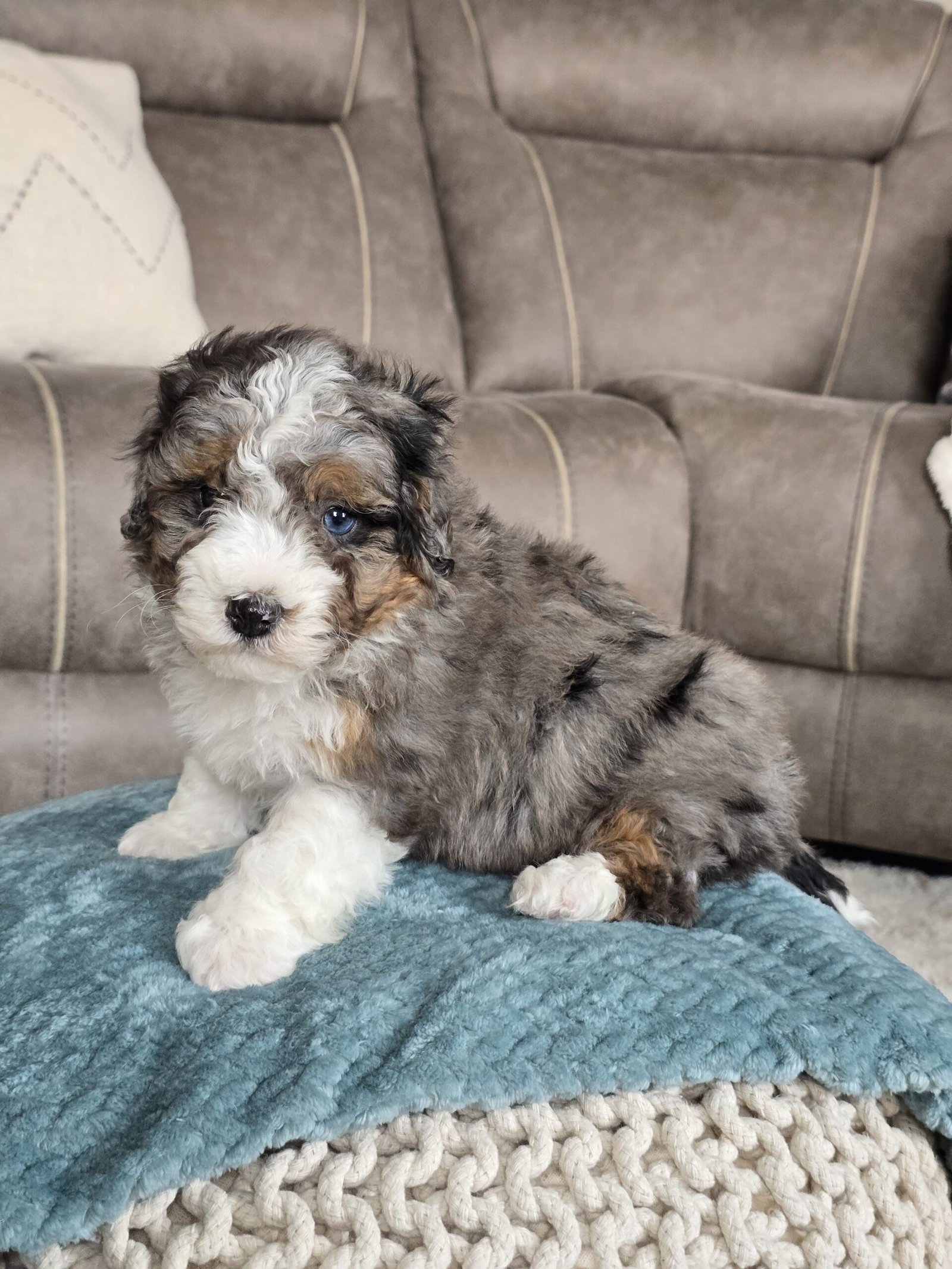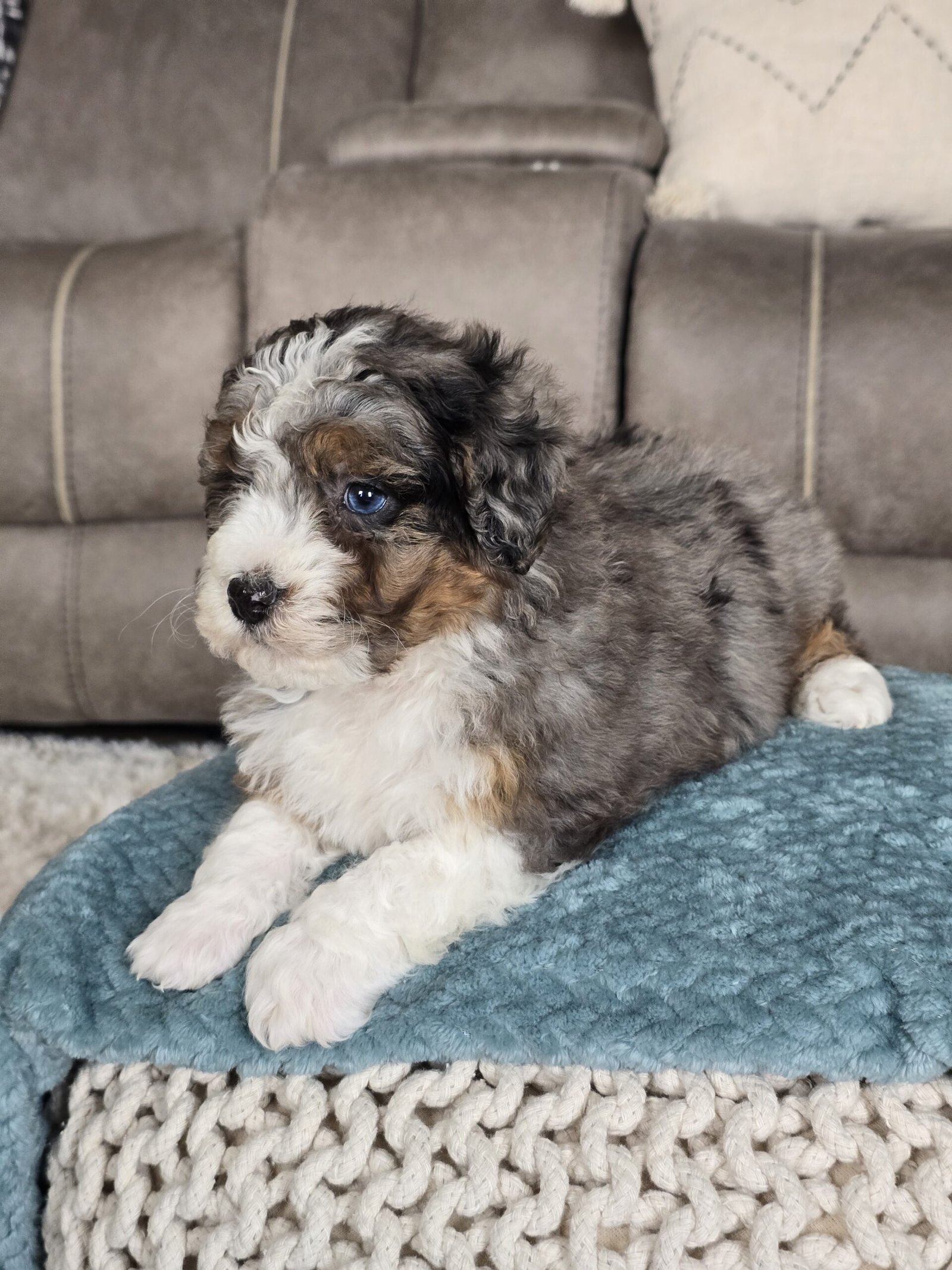 Meet Marlo🩶 Our beautiful, Blue Merle, Micro Bernedoodle Puppy!