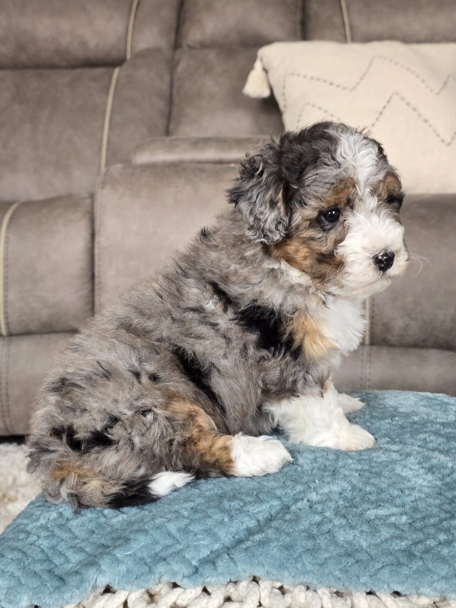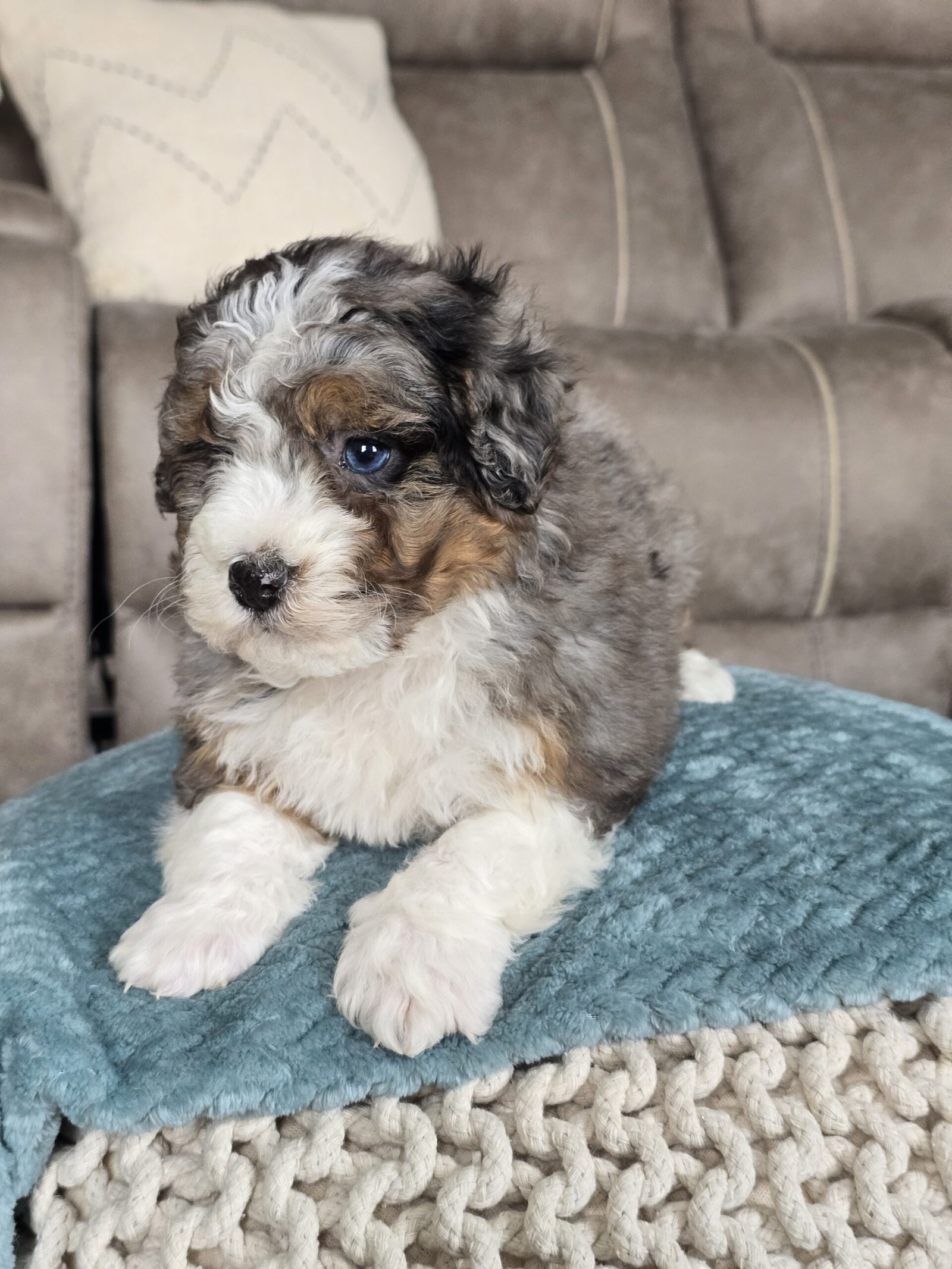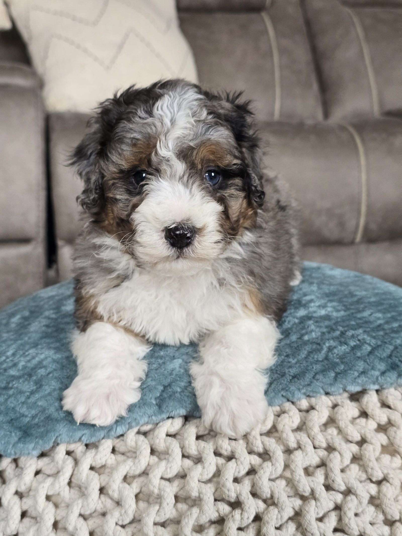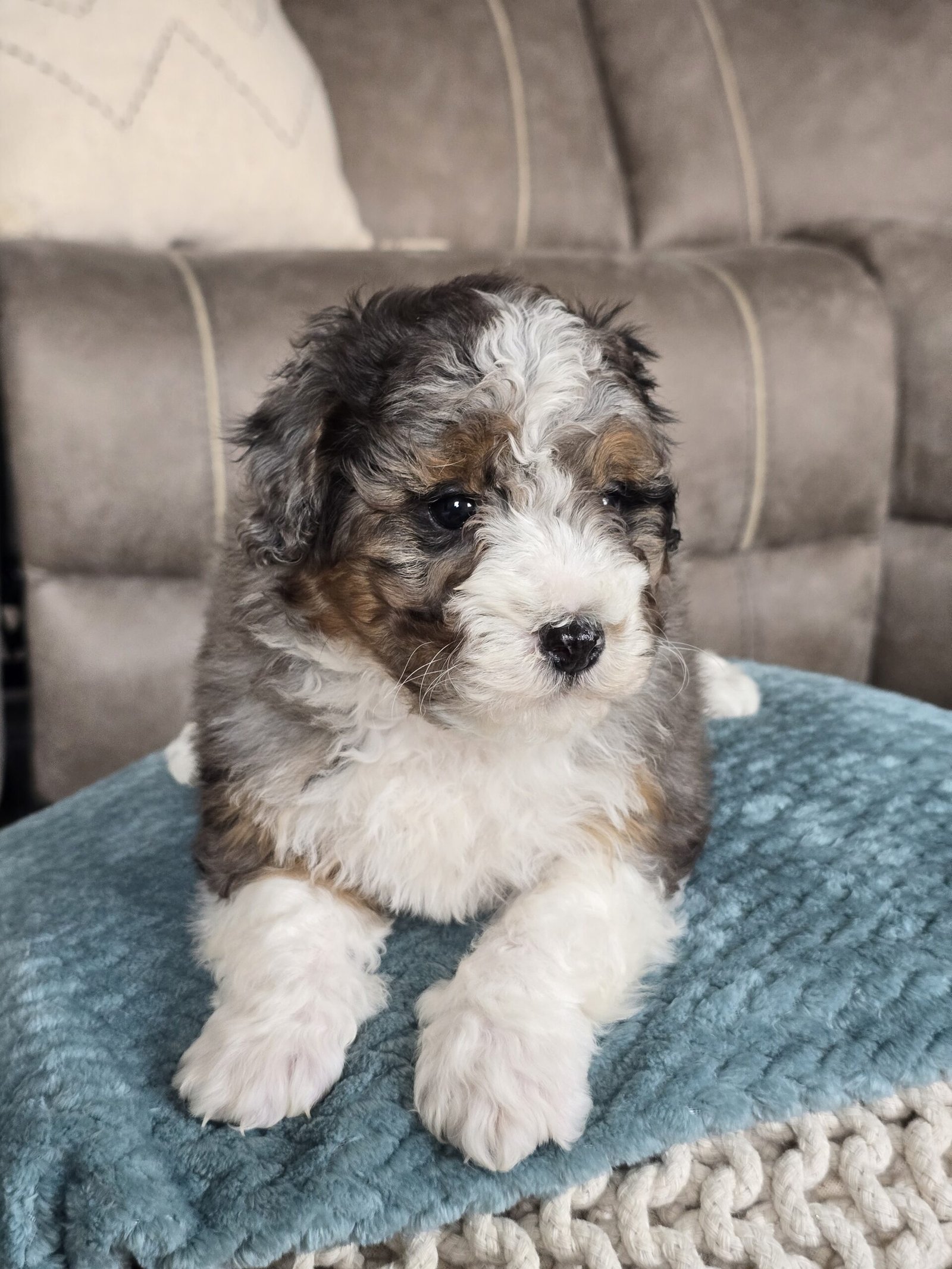 Meet Marlo🩶 Our beautiful, Blue Merle, Micro Bernedoodle Puppy!