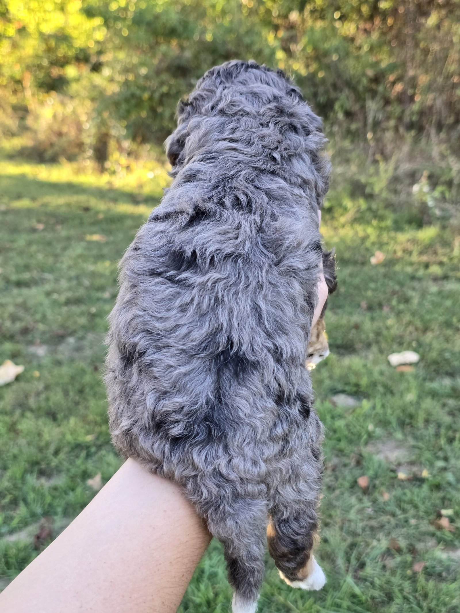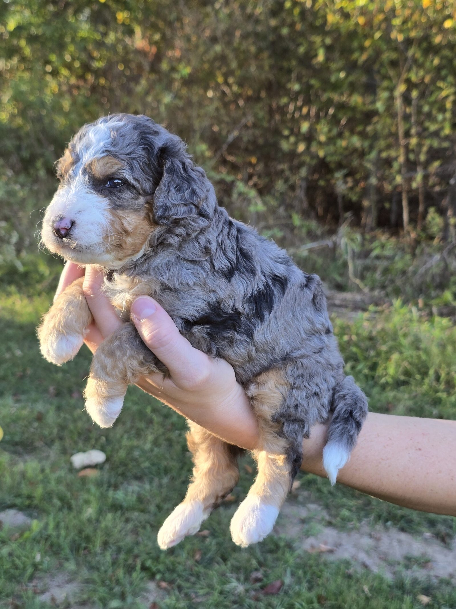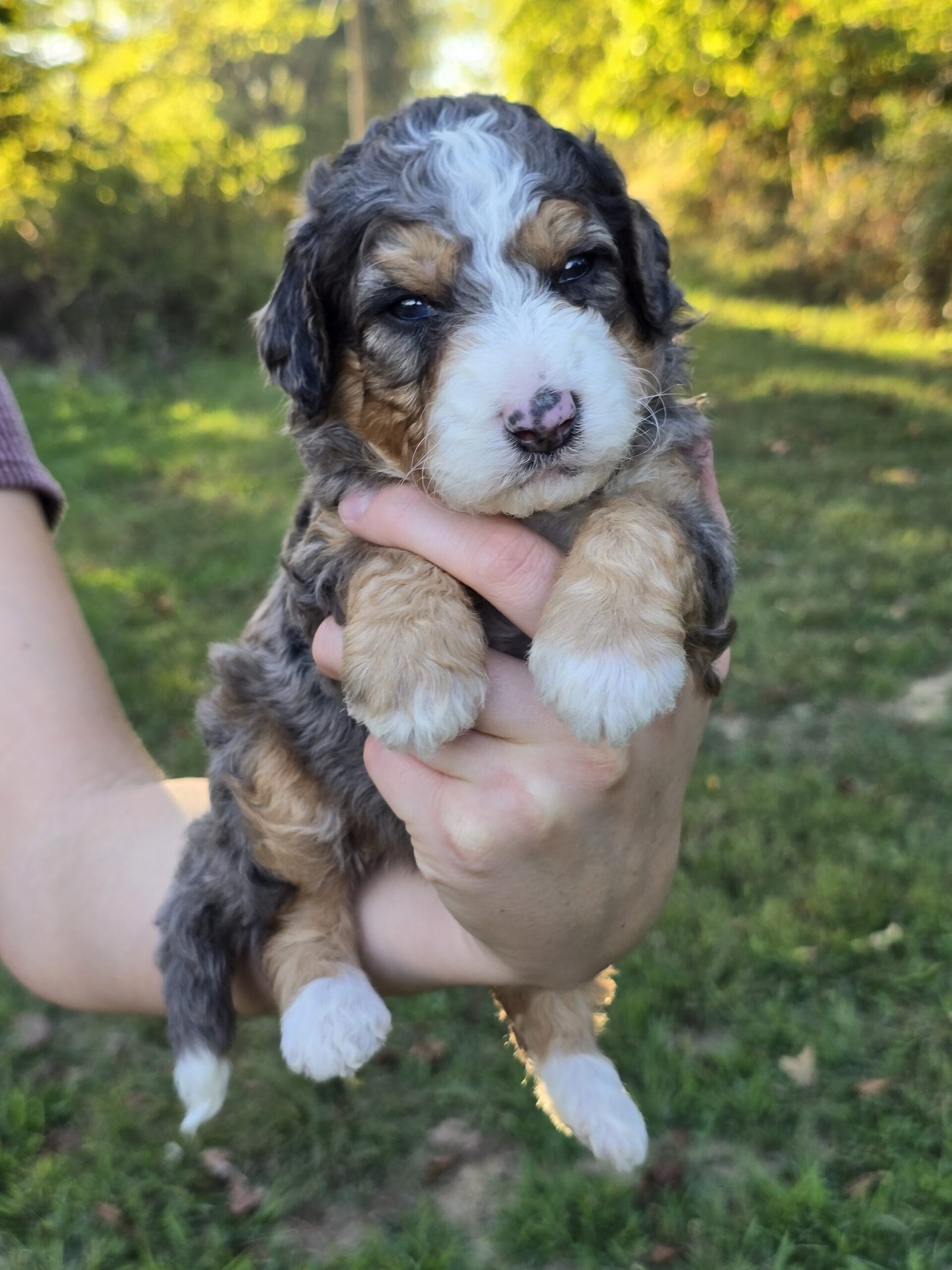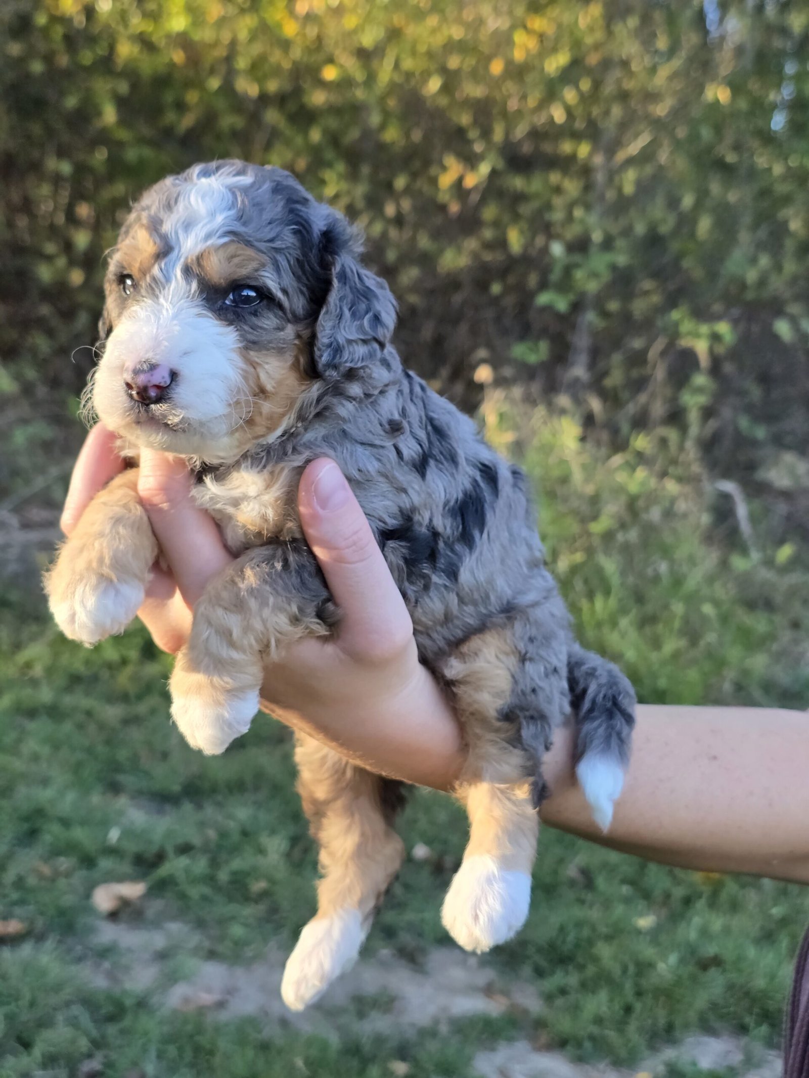 Meet Marlo🩶 Our beautiful, Blue Merle, Micro Bernedoodle Puppy!