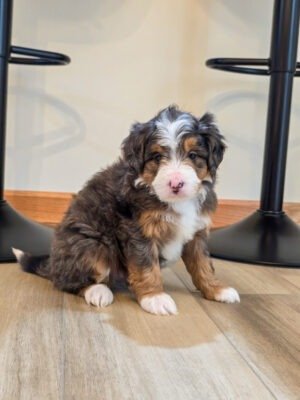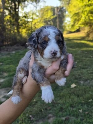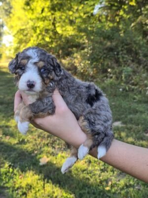 Meet River🩶 Our beautiful, Blue Merle, Micro Bernedoodle Puppy!