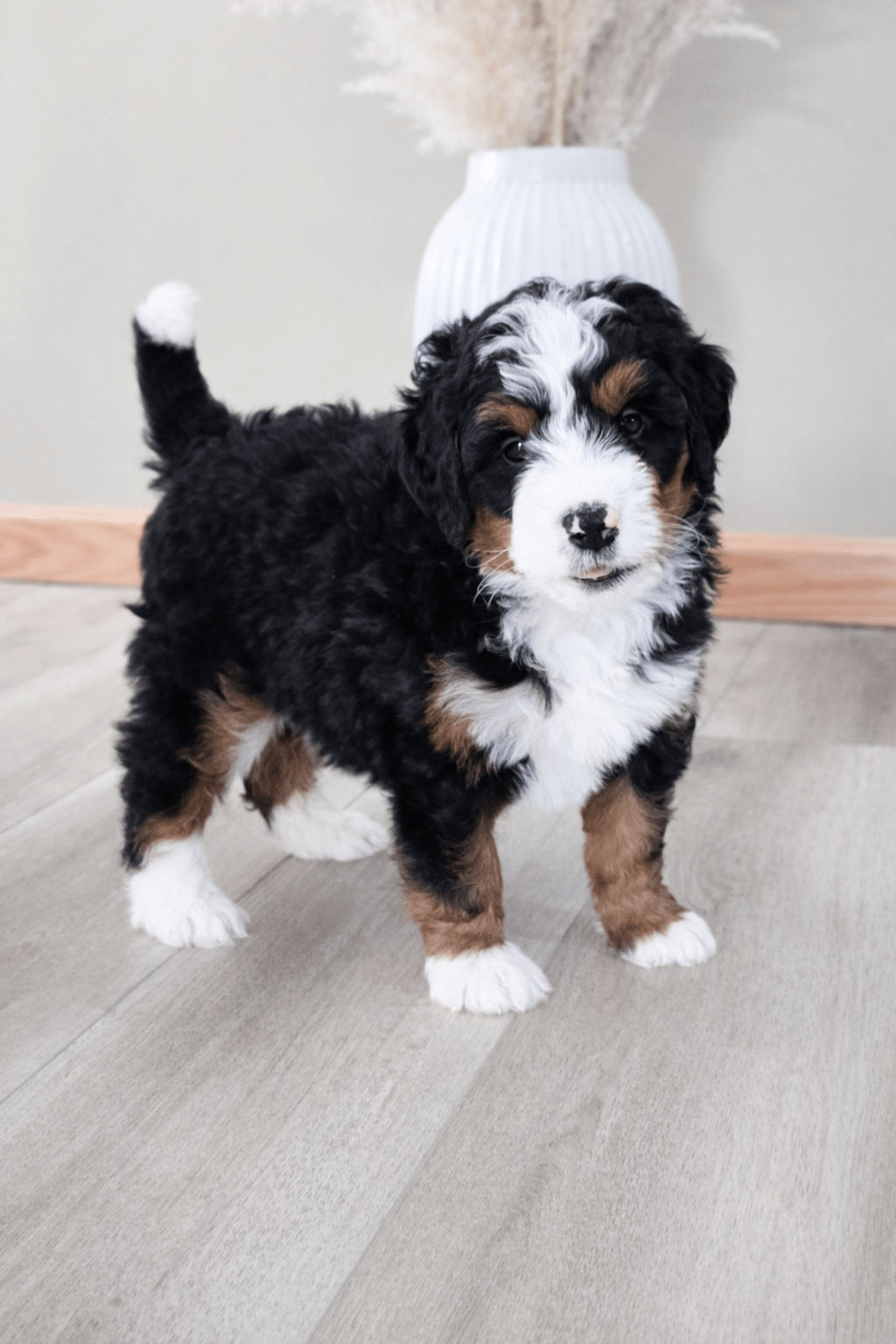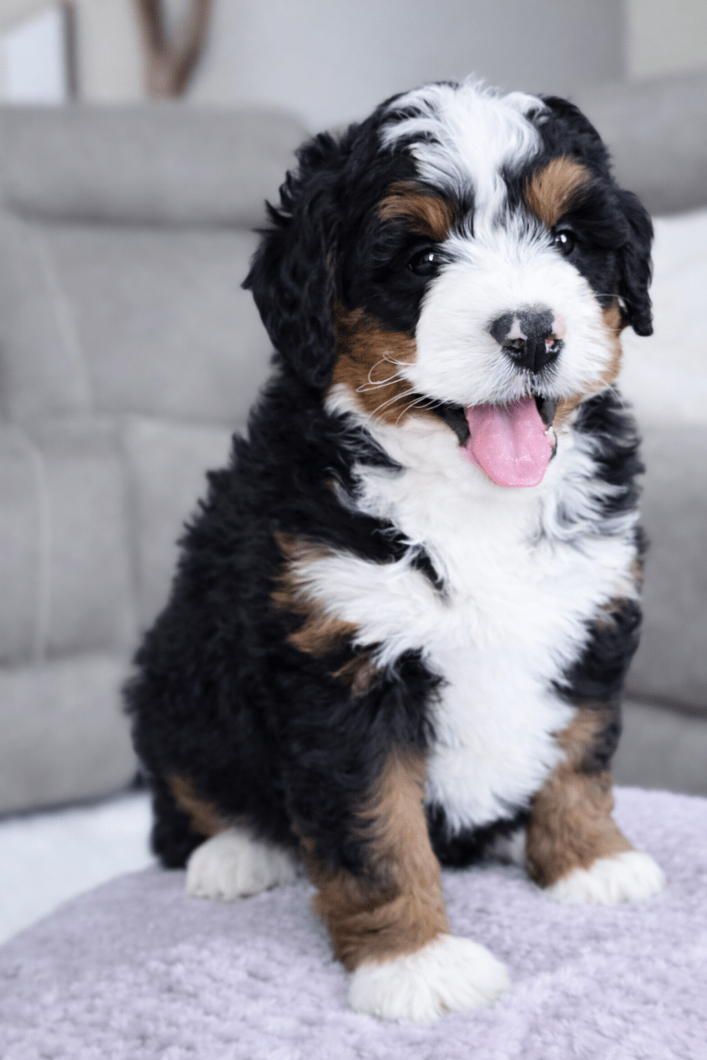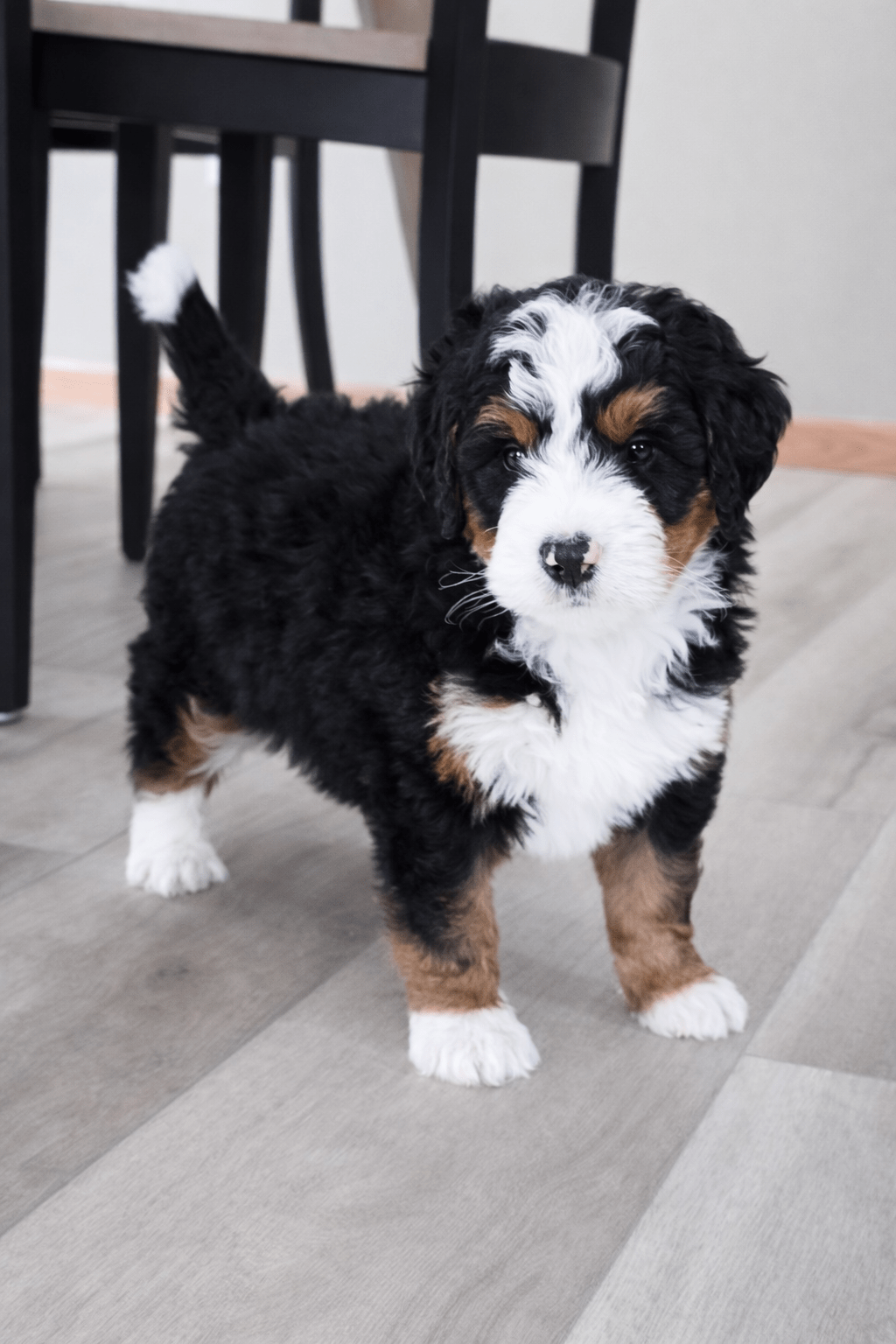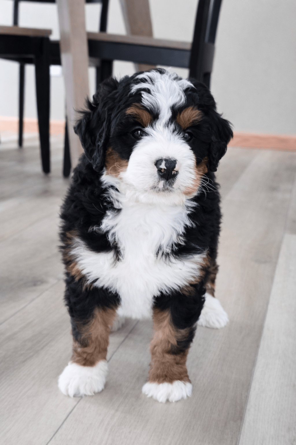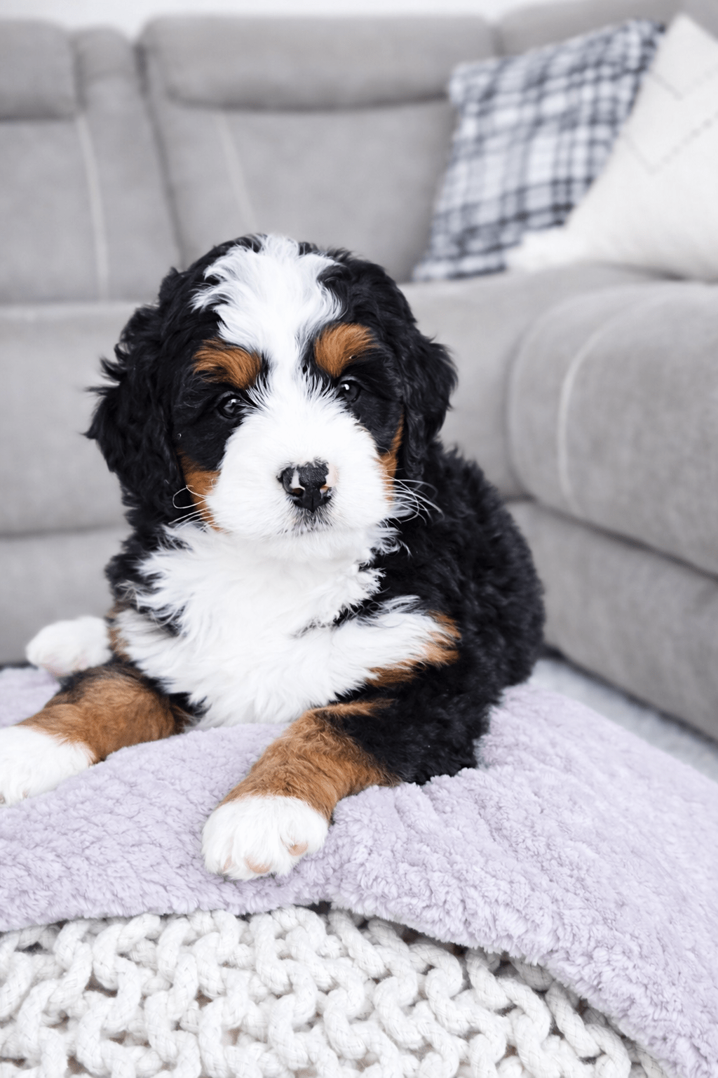 Meet Theo🩶 Our beautiful, Tri Colored , Mini Bernedoodle Puppy!
